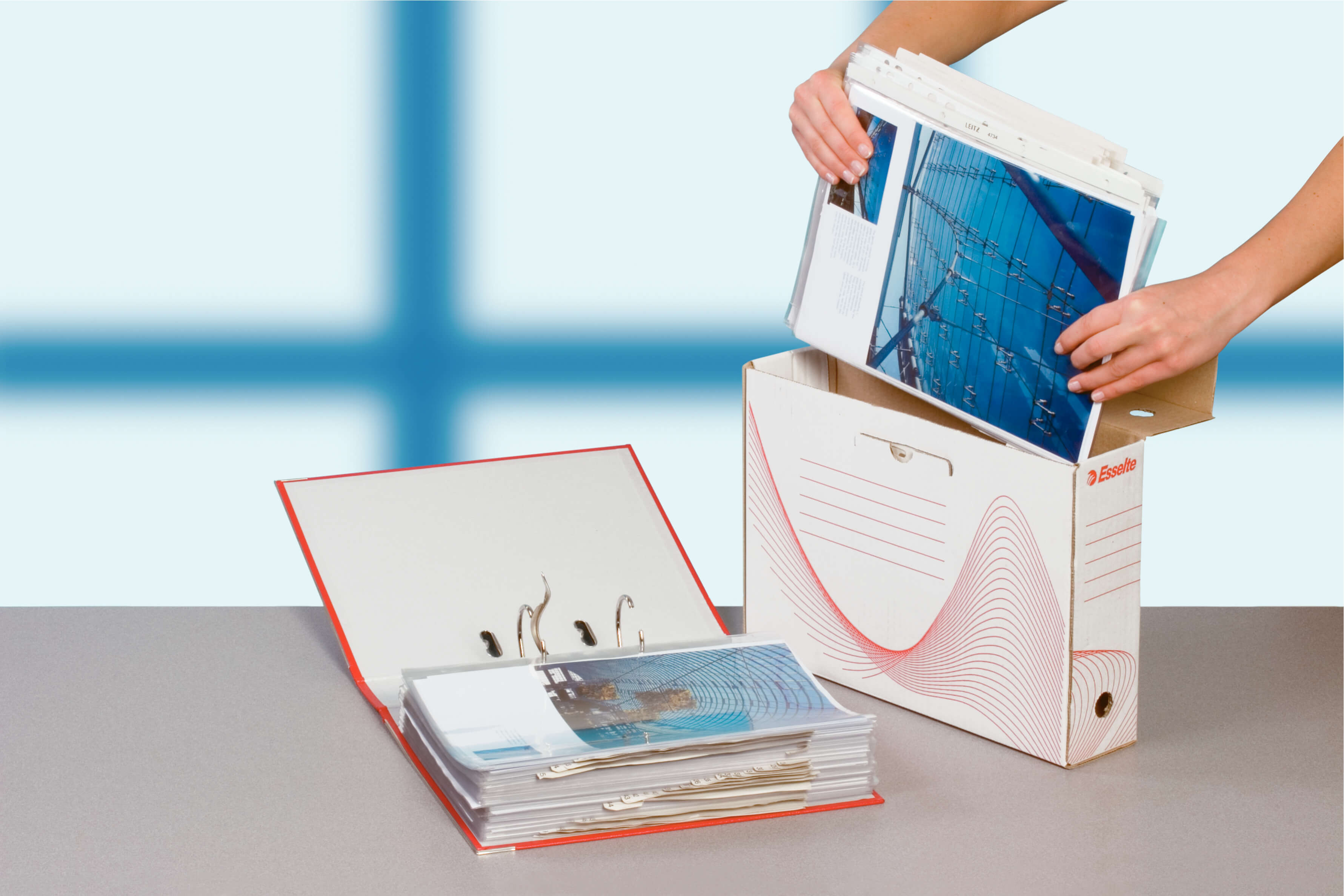 Tone de documente sunt stocate anual in cutiile Esselte Standard, in birouri din toata lumea, din toate sectoarele de activitate.