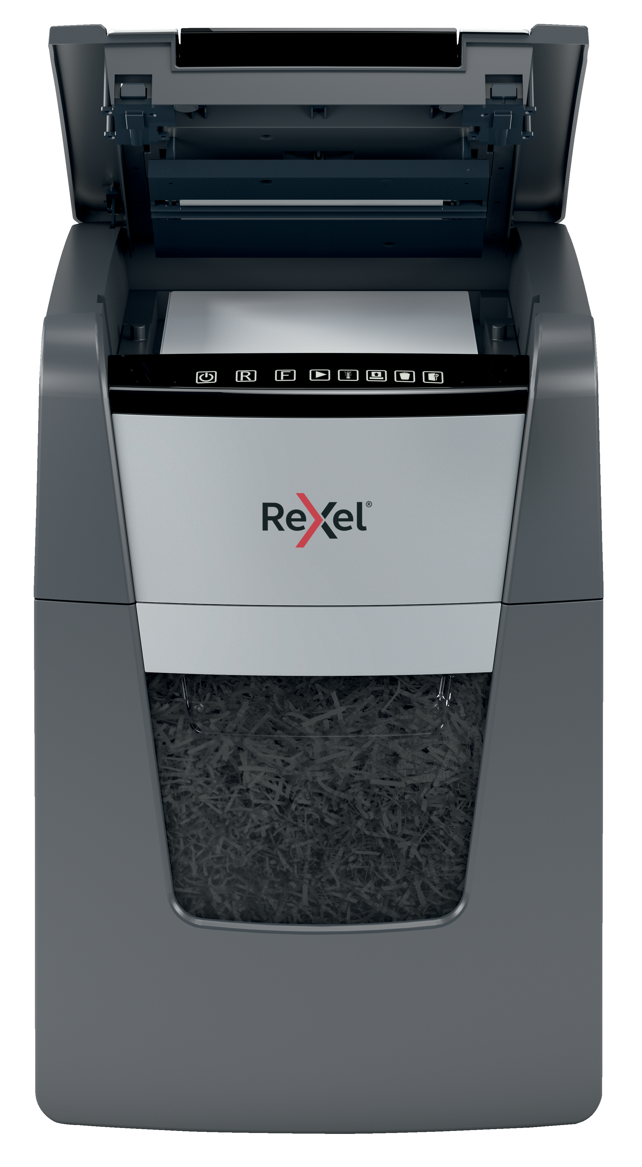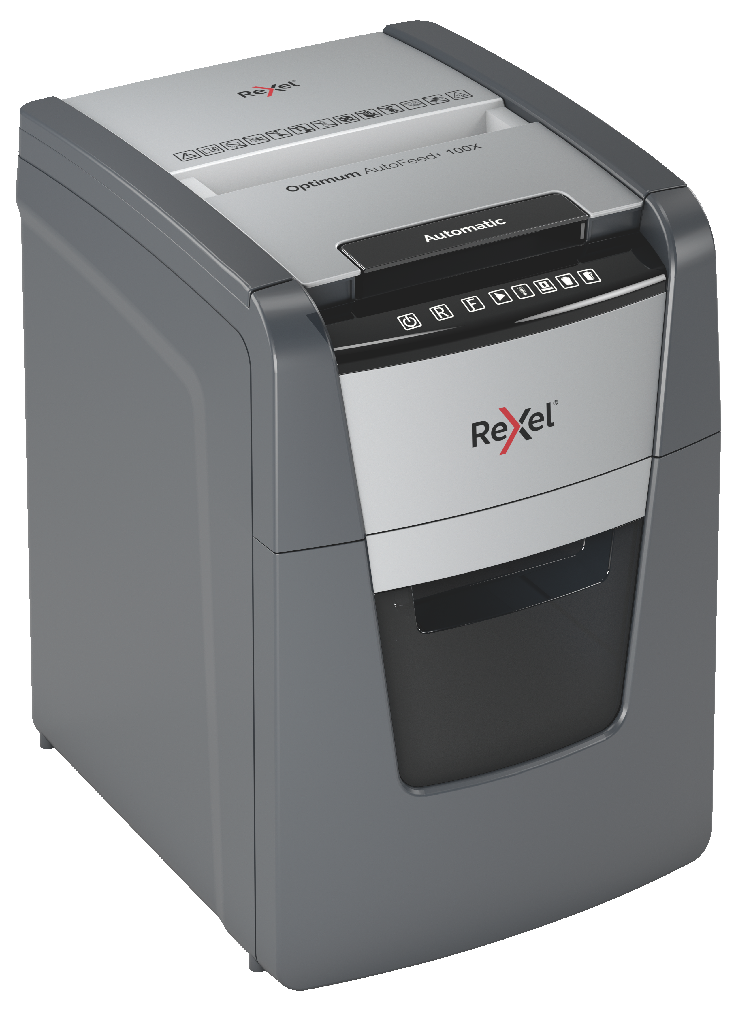Distrugator automat pentru documente Rexel Optimum 100X cu un timp de functionare continuu de 20 minute, cu functie de racire, panou de control tactil si tehnologie anti-blocare. Distruge pana la 100 de coli A4 simultan cu functia sa AutoFeed, in timp ce fanta manuala distruge pana la 8 coli A4 (80 gsm). Nu este nevoie sa indepartezi capsele si agrafele, acest distrugator automat face toata treaba pentru tine. Fiind ultra silentios (nivel de zgomot 55 dBA), mentine un mediu de lucru calm. Modul de repaus se activeaza dupa 3 minute de nefunctionare. Are un cos de 34 litri ce se extrage, pentru o golire cat mai usoara si un senzor infrarosu ce arata cand este complet plin. Fiecare document este distrus la un nivel de securitate P4 pentru eliminarea in siguranta a documentelor confidentiale.